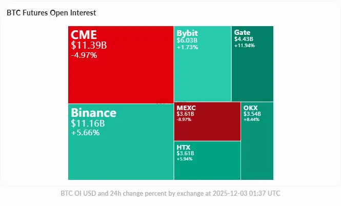 持仓总量达到$593亿,24小时增长2.43%,显示市场参与度提升。 资金费率普遍为正(币安0.001991%、Bybit 0.000887%),多头支付空头费用,反映市场温和看多情绪。