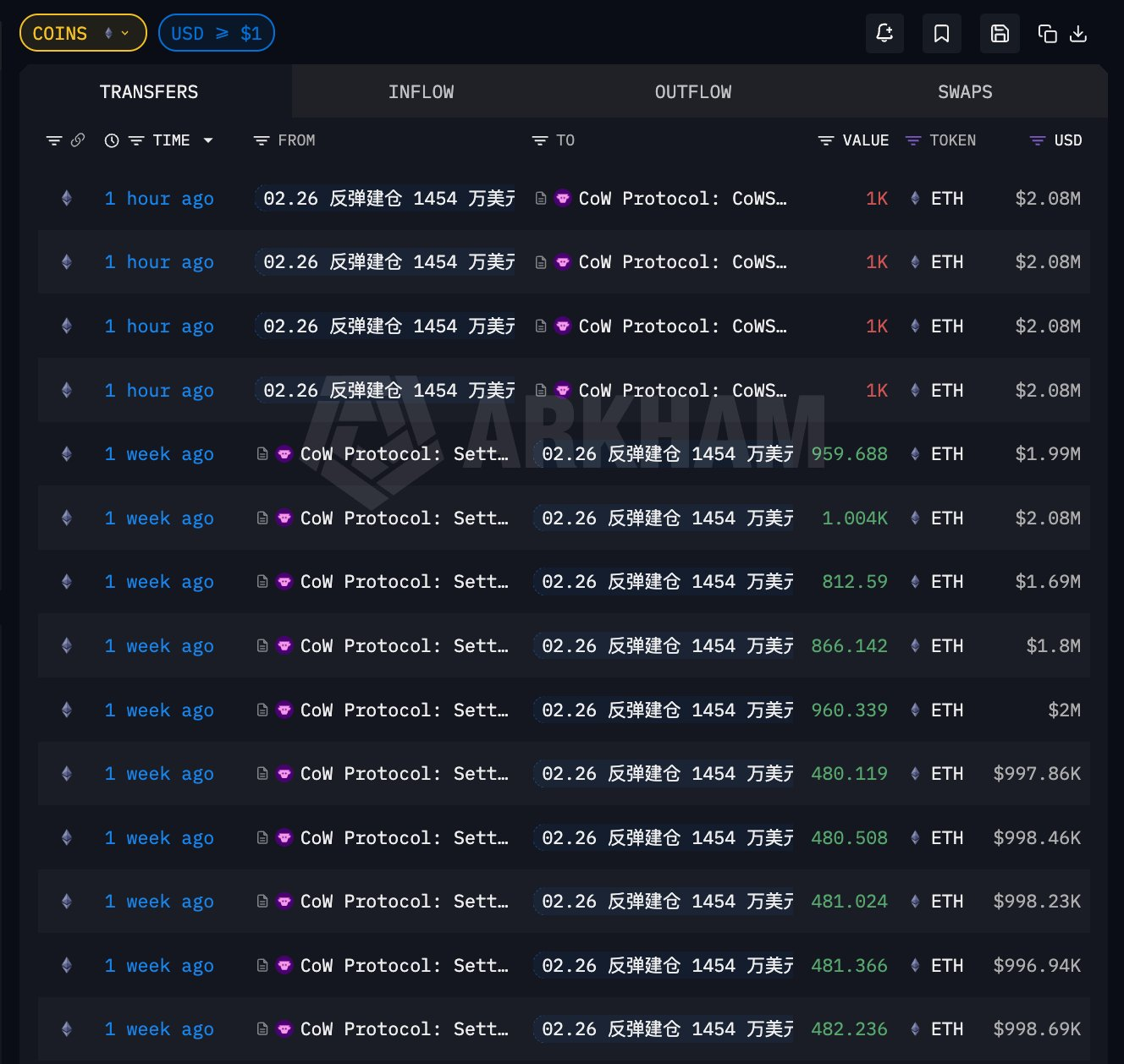 深潮 TechFlow 消息,3 月 6 日,据链上分析师 Ai姨(@ai_9684xtpa)监测,一位于 2 月 26 日建仓 1454 万美元 ETH 的大户正在减仓。该地址于 1 小时前以均价 $2077.39 在链上抛售 4000 枚 ETH(价值 830.9 万美元)。此前一周,该大户的建仓价为 $2075.45,本次交易仅获利 7760 美元。目前,该地址在链上仍持有 3008 枚 ETH。