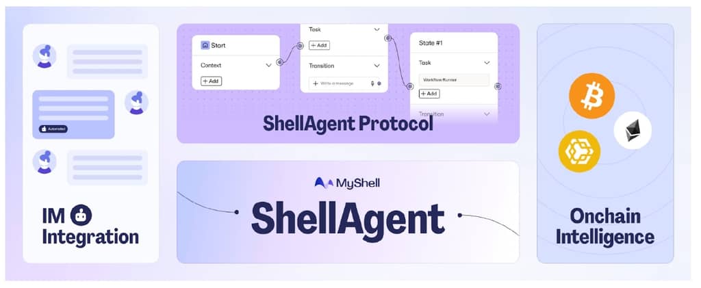 也正是因此,在 Myshell 上周末公布了 ShellAgent 组件协议、IM 集成和链上智能化等三项重大更新后,SHELL 受此利好影响,24H 大涨 40%。